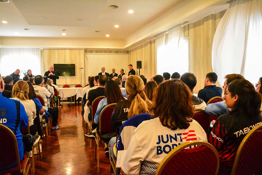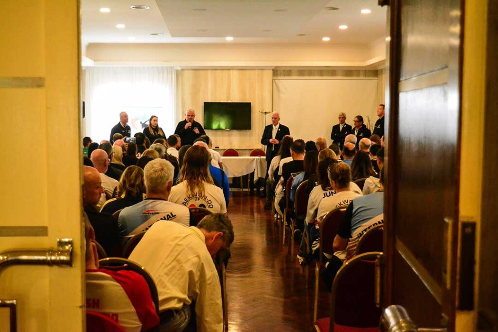 The first to give his greetings was GM Marano, who praised the technical knowledge of all the umpires and celebrated the opportunity for both committees to work together and exchange opinions in order to overcome the differences in criteria that exist when evaluating the technique in patterns