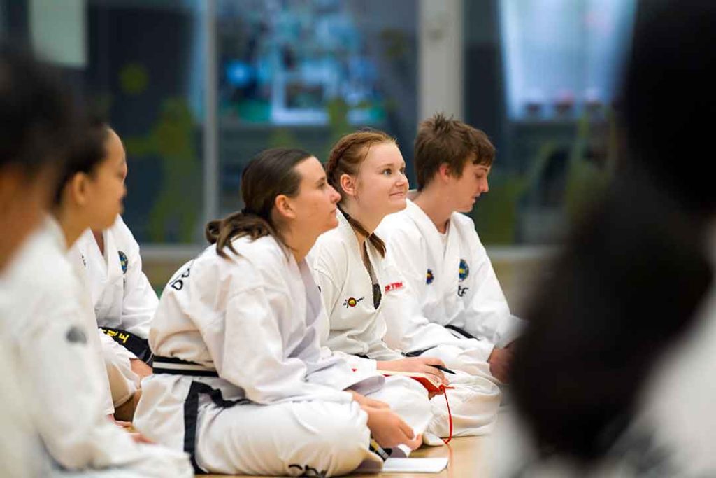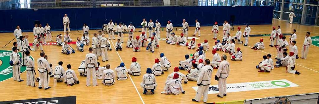 Day Two saw everyone back on the floor to continue learning about the technical and historical details of the coloured belt patterns. Following this, the red belts moved away to train with Master Barbour while the black belts continue to work through the Dan patterns. Later in the morning, Grand Master Laquerre ran a sparring session that made sure everyone had earned their lunch.