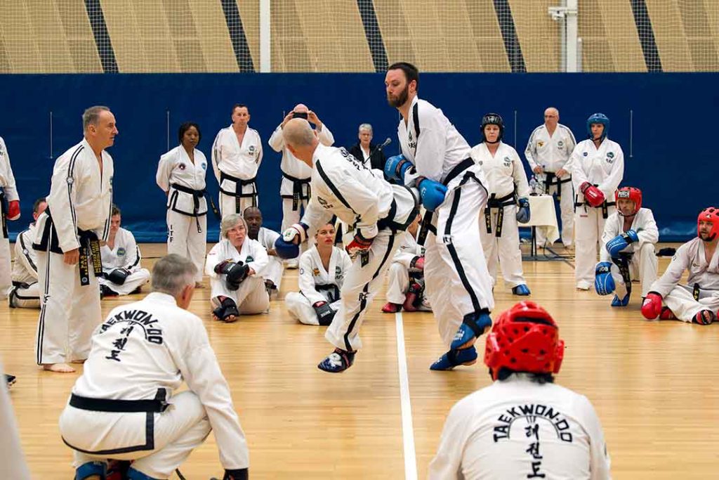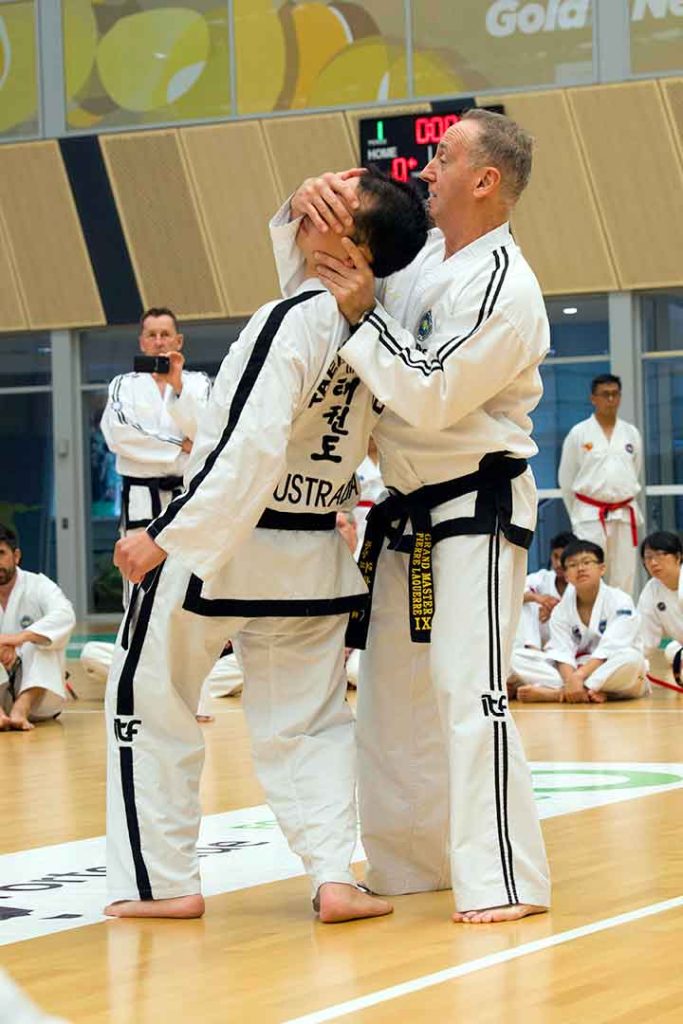 Day 3 was a full on morning of dynamic board breaking and high-energy sparring with Grand Master Laquerre, followed by a self defence session overseen by Grand Master Rounthwaite. Despite everyone feeling a little worse for wear and tired from the previous days of intensive and rigorous Taekwon-Do, the beaming smiles showed just how much this martial art has to offer as Grand Master Laquerre and Grand Master McPhail shared the depth and breadth of their knowledge with all the participants.
