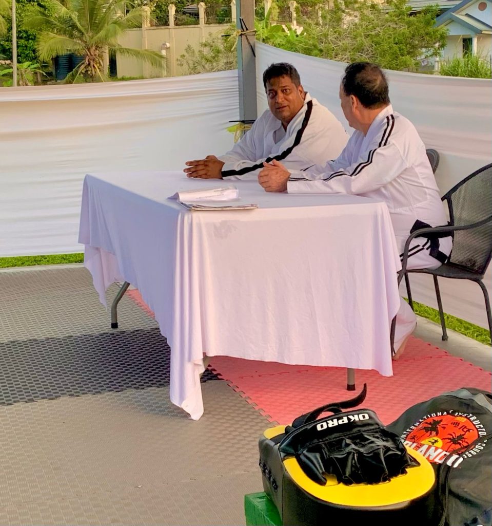 The focal point of Master Lue’s visit was the testing of two candidates for the 4th Dan black belt. Bsbn Akash Rampersad who is 28 years old and the head of Team A Taekwon-Do, the largest school in Trinidad with over 300 students, was one of the candidates. The other candidate was Bsbn Ryan Walker, who is the current President of the Barbados Taekwon-Do Federation. Ryan (or “Brush” as he is affectionately known in Trinidad) started his Taekwon-Do journey in Trinidad 22 years ago while pursuing a degree in Electrical Engineering at the University of the West Indies, Walker recently revitalized the Taekwon-Do program in response to the government’s lifting of COVID-related restrictions on combat sports.