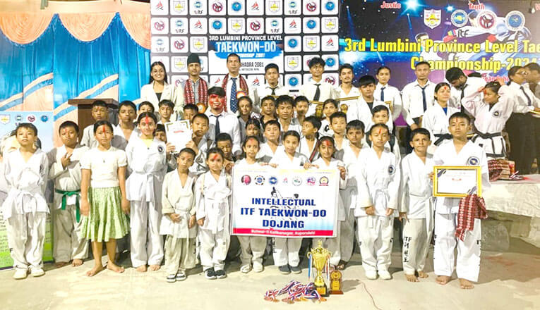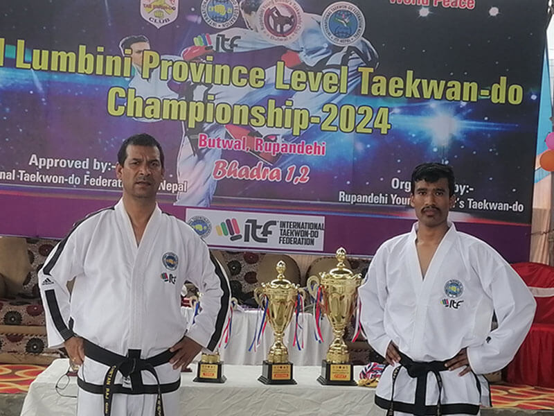 Nayagaon Dojang of Rupandehi has won the first place secured the 8 Gold 6 Silver and 10 Bronze likewise the Pragati Taekwon-Do Dojang secured 6 Gold 8 Silver and 10 Bronze and Yogikuti -Based Intellectual Dojang Secured with 3 Gold 5 Silver and 8 Bronze of the 3rd Lumbini Province level Taekwondo Championship,