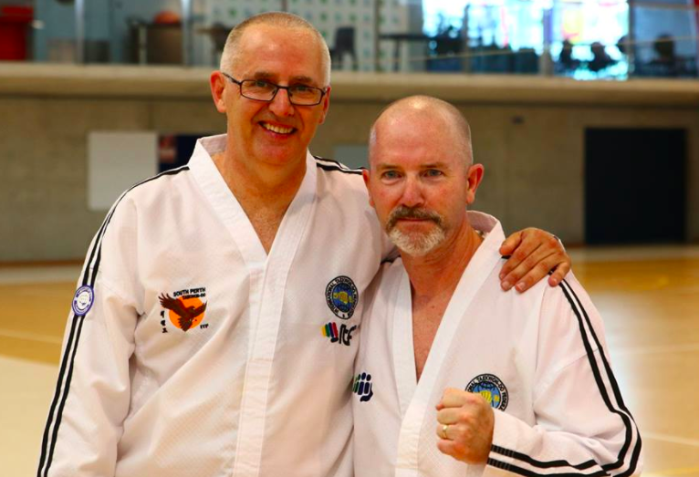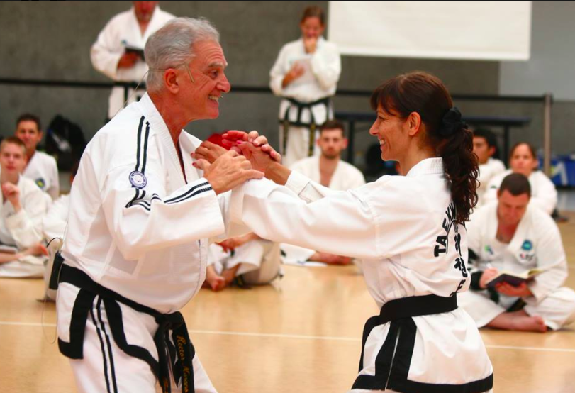 It had an extensive program starting Friday afternoon all together with some interesting and varied warm up and kicking techniques with Master McPhail, followed by Patterns with Grand Master Marano from Chon-Ji through to Hwa-Rang. GM Marano is like a walking TKD Encyclopaedia, his grasp and attention to detail is quite astounding. After this whilst the 5th Dans and above got GM Marano to themselves for their Patterns, GM Lan took the rest of us through some sparring drills until all too soon the 1st afternoon was over and it was time to go and rest up for the following full day.
