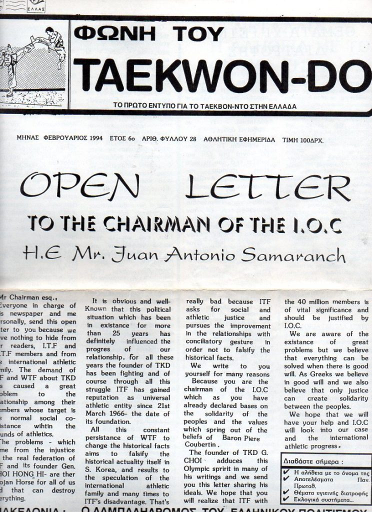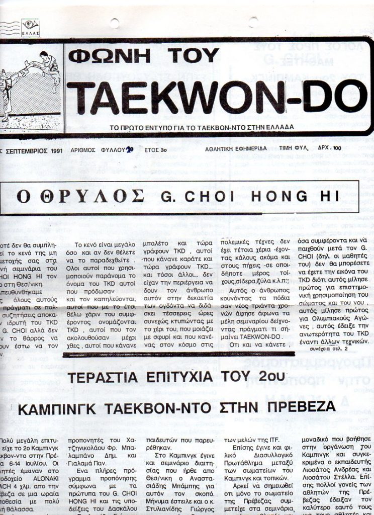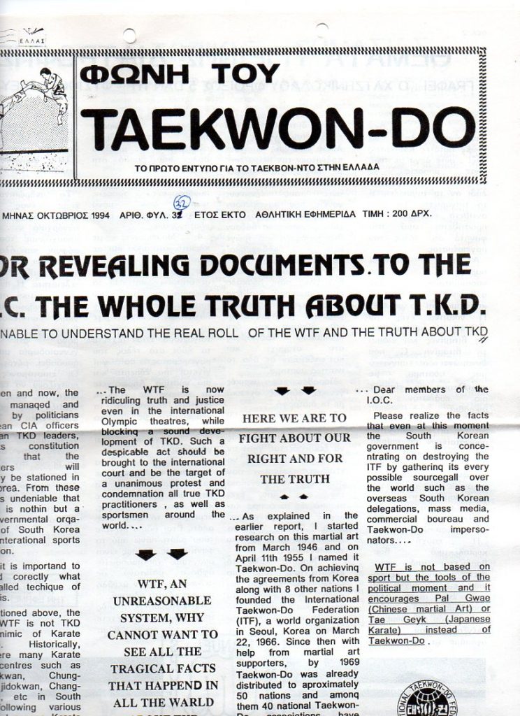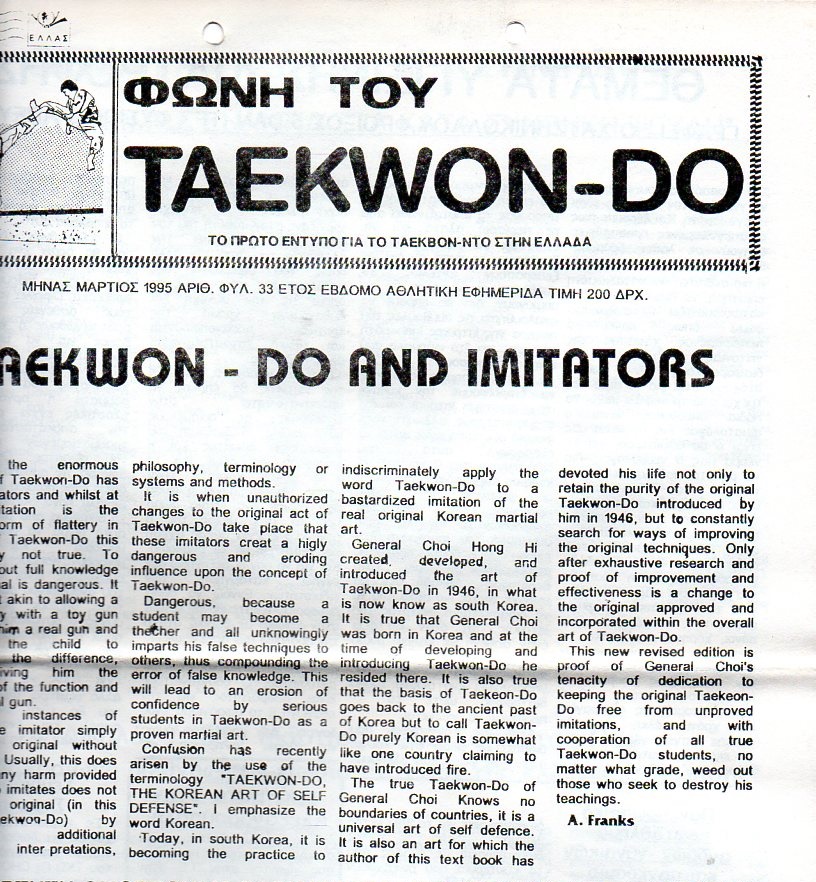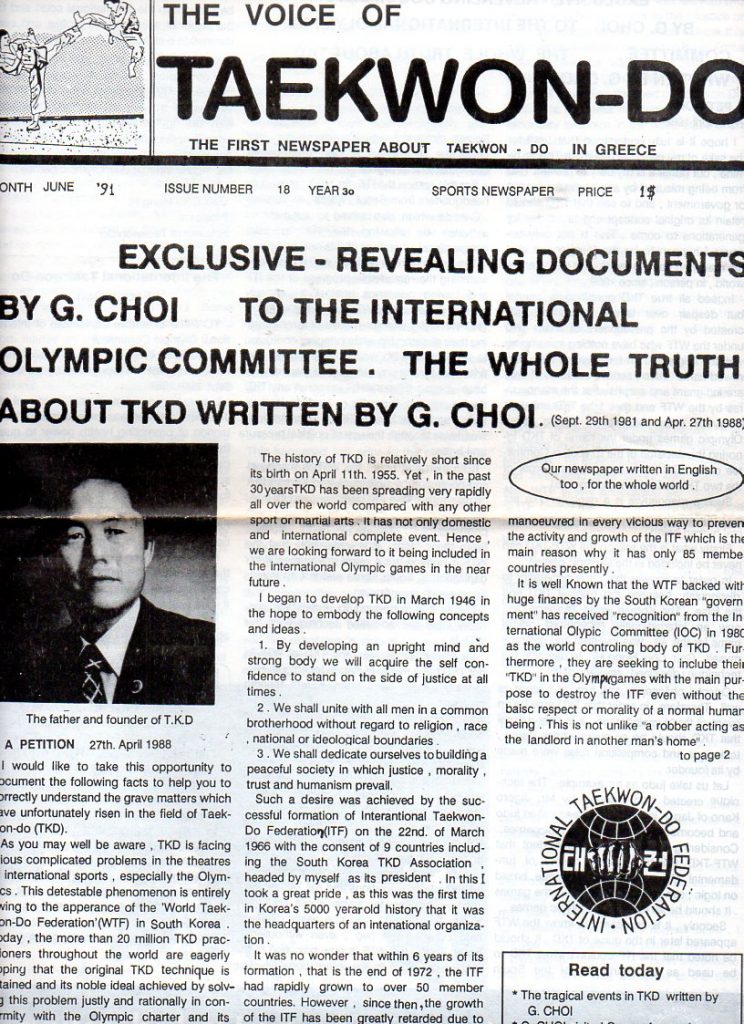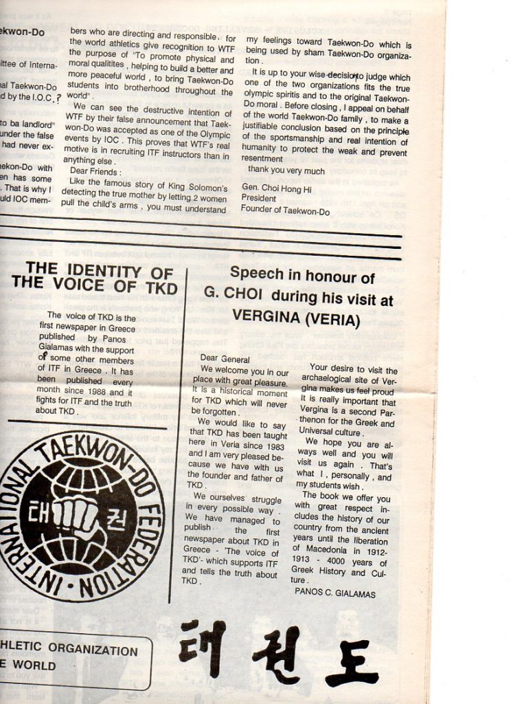 Durante el periodo de 1989 a 1995, como editor del periódico “Voces del Taekwon-Do”, entreviste al General Choi Hong Hi (en Ancient Olympia) sobre muchos temas relacionados con eventos ocurridos en su vida.